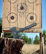 This set of three 10.5″ throwing axes, each with a 3.5″ 420HC stainless steel blade and weighing 0.86 lbs, is perfectly balanced for optimal performance. Crafted from solid full-tang stainless steel, these axes are durable and reliable for outdoor fun. The set includes three independent sheaths for easy and safe storage, making it a great choice for throwing with family and friends.